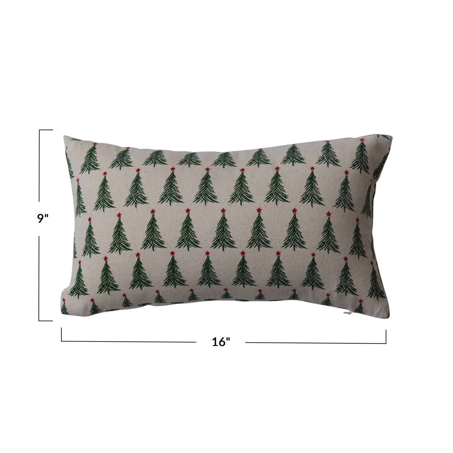 A cozy embrace of the holidays, this lumbar pillow features a stonewashed cotton print with a charming Christmas tree pattern in natural, green, and red. An ideal addition to the festive decor, it brings a rustic charm and a splash of Yuletide color to any setting. A plush polyester fill gives this pillow a full, firm shape.