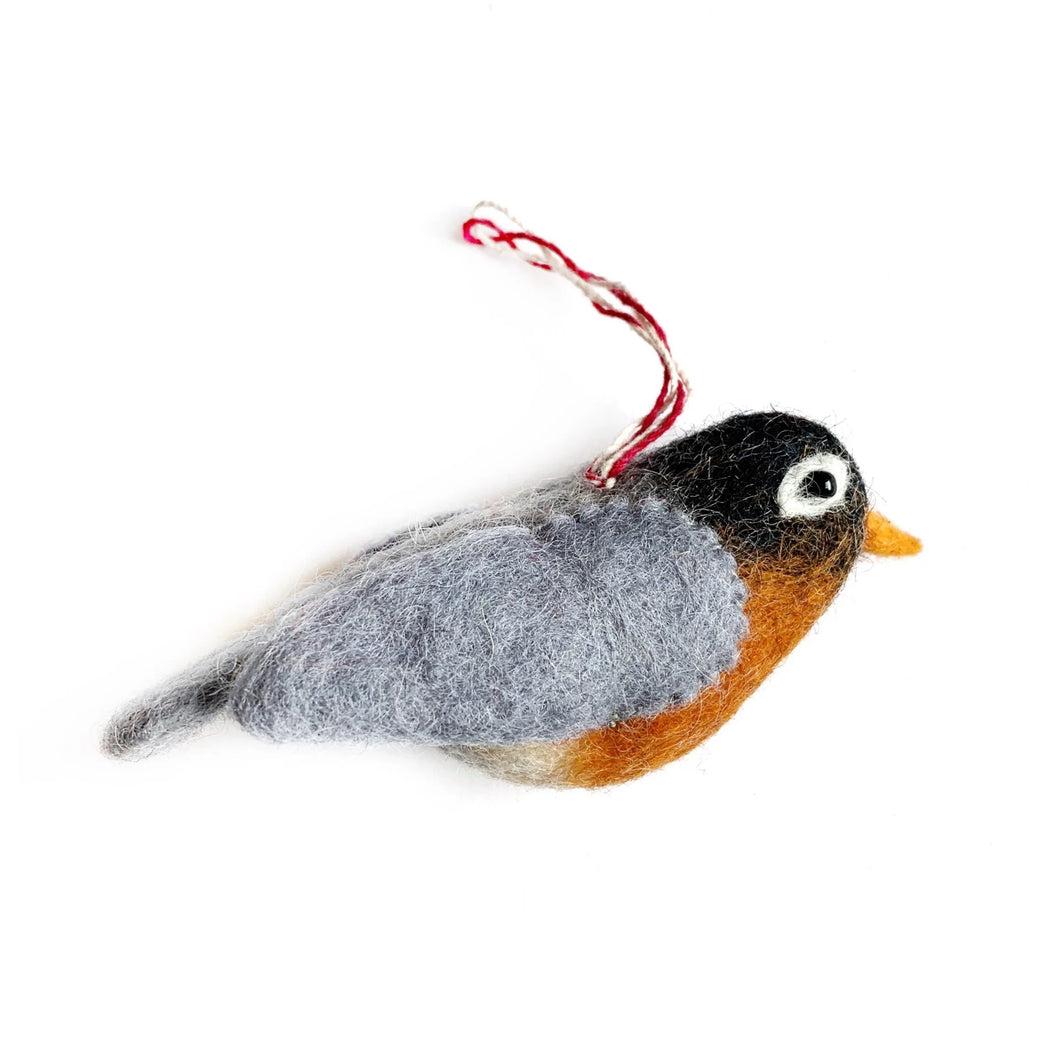 A wonderful Christmas gift for bird enthusiasts and nature lovers of all kinds! Our Felt Wool Robin Christmas Ornament is handmade in Nepal, Asia. Artisans use colorful sheep wool to create a variety of favorite North American birds. This adorable bird ornament is perfect for a curious critter or stocking stuffer.