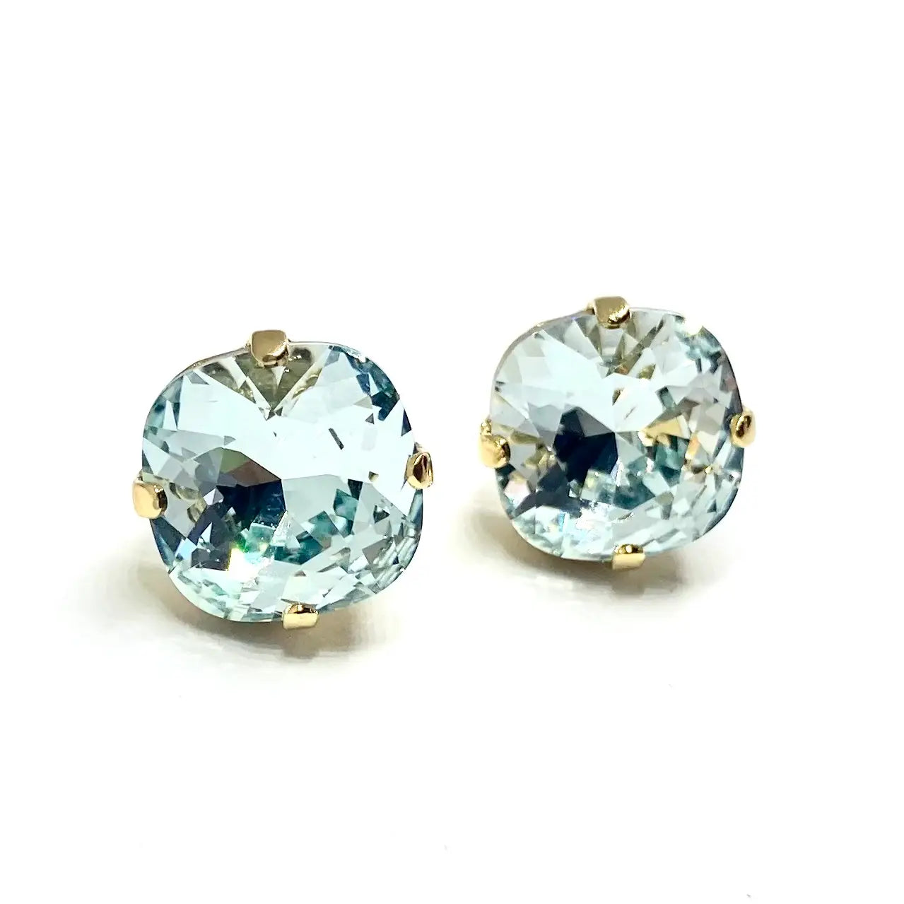 These small swarovski studs are 3/8" and sure do sparkle. Each have a gold plated setting with a surgical grade stainless steel post.