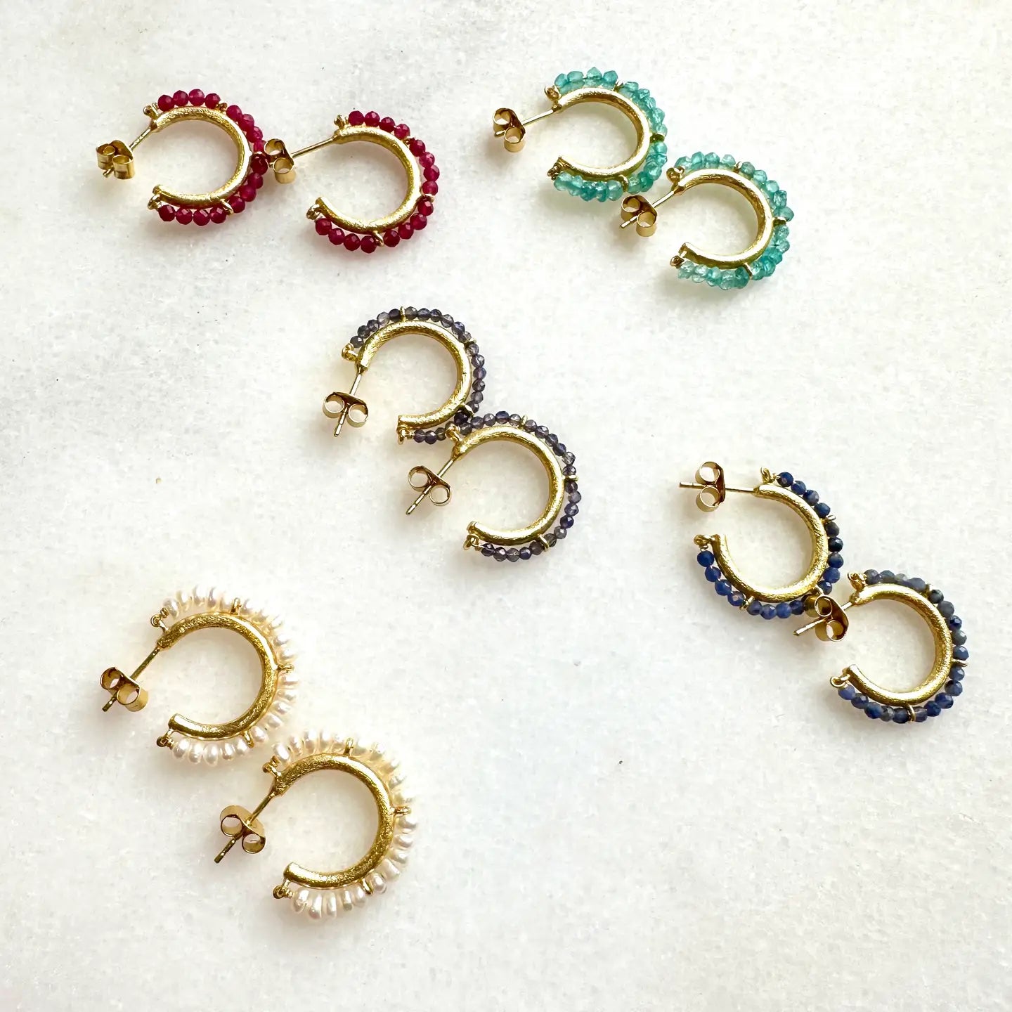 24k gold vermeil hoop earrings lined with semi-precious stones.