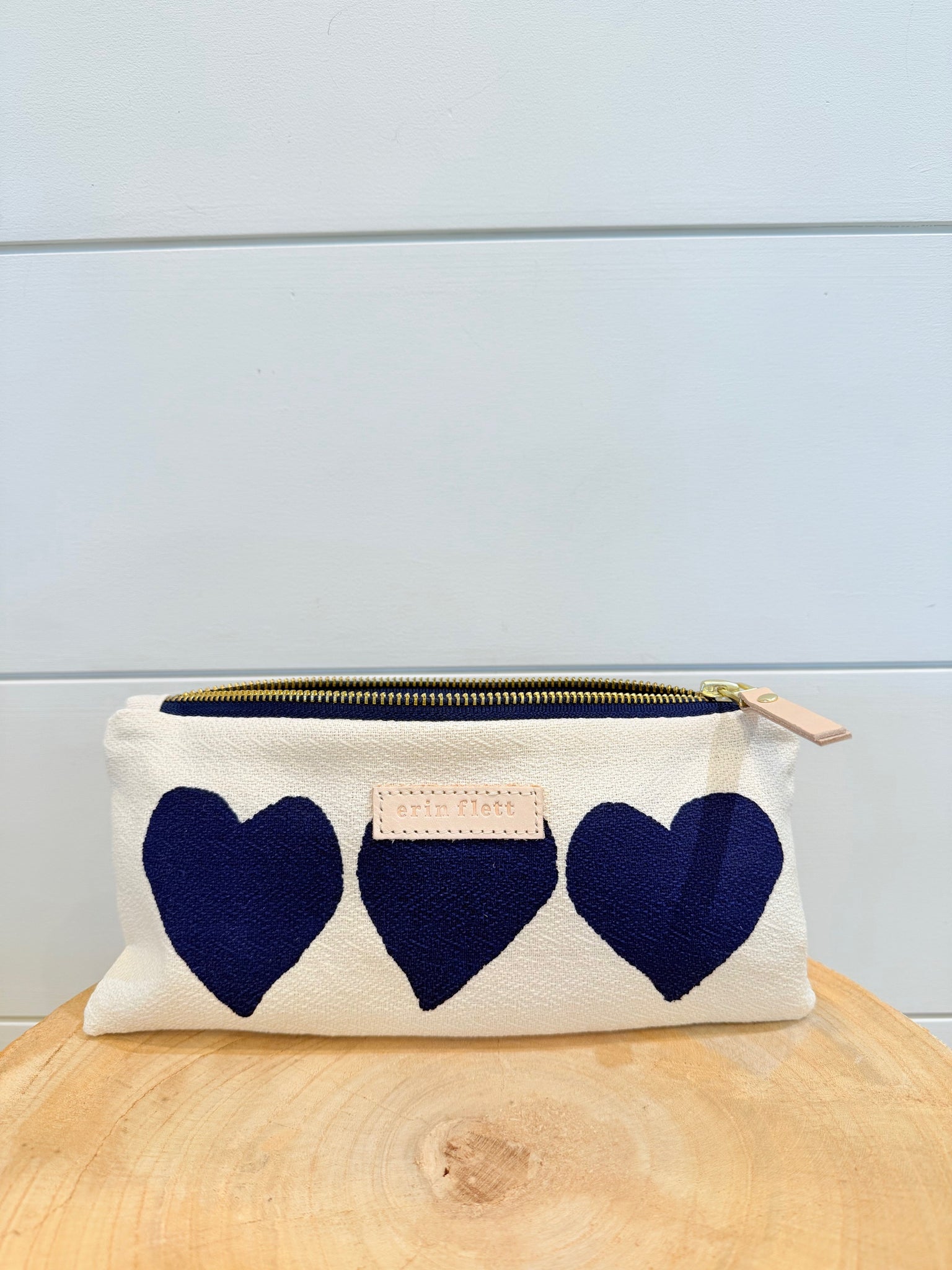 We love these little heart gems! They are machine washable and designed to be turned inside out to spot clean then throw in the wash, lay flat to dry. Hand silk screened and 100% made in Maine. Dimension is 9x4 pencil flat.