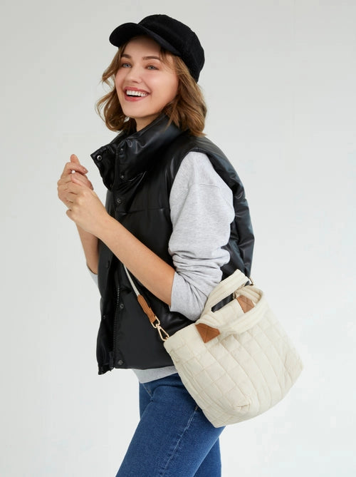 Compact, chic, and endlessly versatile, the Ezra mini cross-body tote is your go-to bag for wherever the day takes you. Crafted from quilted nylon, this lightweight beauty features comfy top handles and a detachable, adjustable strap so you can switch it up from handheld to cross-body in a snap. Available in an eye-popping array of colors, it brings both practicality and personality to your everyday look. Sized just right to carry your essentials while keeping your style effortlessly cool.